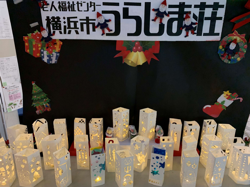 うらしま荘、受付前をキャンドルで彩ります。ぜひご覧ください。 |