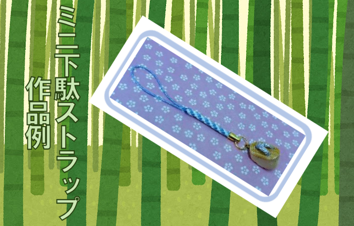 | 内容 | 竹細工は竹トンボやザルやカゴなどを作ると思っていませんか?たのしい竹細工の世界を、ミニ下駄ストラップを作って体験しましょう! かながわシニア美術展神奈川県知事賞受賞!20年のベテラン講師が指導いたします。 |